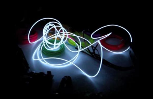 Producen luz pero no calor, y tienen muy bajo consumo energético. Son cables electroluminiscentes (El Wire), un material inteligente de creación reciente que cada vez va encontrando más aplicaciones, entre ellas la decoración navideña. Quizás os suene haberlos visto tuneando coches, bicicletas, m